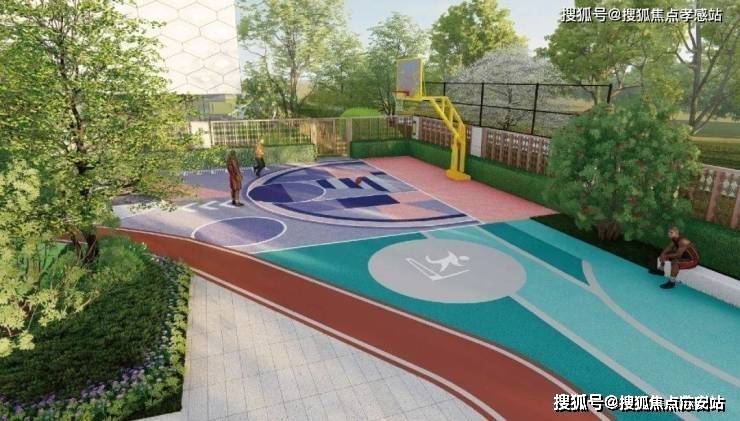 项目室外精心铺设约600米AI智能跑环系统、儿童乐园、乒乓球场、羽毛球场、篮球场、大小广场等运动建身设施。