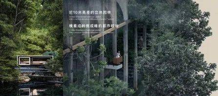 ,将传统平面绿化转化为垂直的多层次园林空间,整个下沉庭院空间加上架空层约14米,这