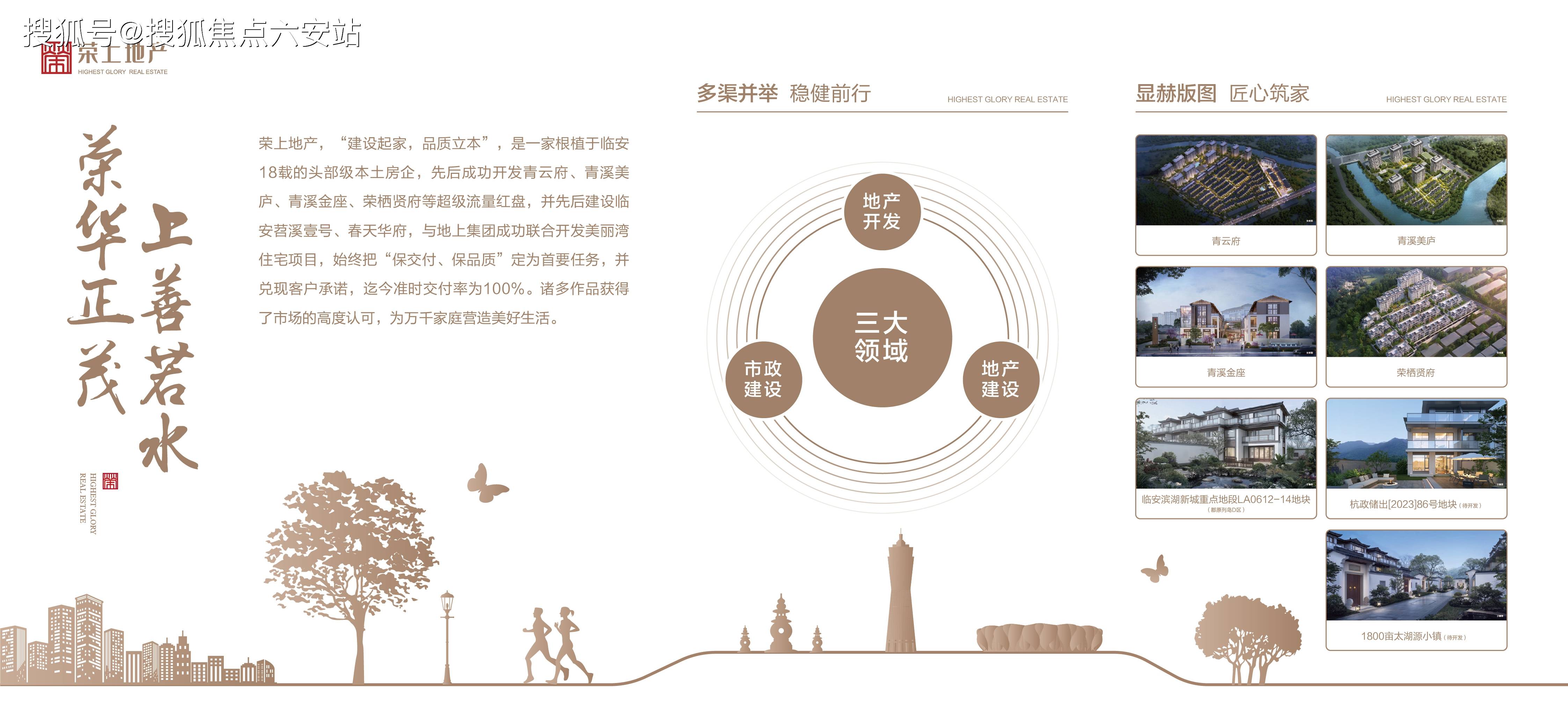 荣栖贤府的开发商为荣上地产,这是一家根植于临安18载的头部级本土房企,秉持“建设起家,品质立本”的核心理念,始终将“保交付、保品质”作为首要任务,迄今准时交付率达100% ,用实力兑现每一份业主承诺。荣栖贤府营销中心:400 868 0951 销售经理:【微信同步】开发商认证多年来,荣上地产深耕临安,先后成功开发青云府、青溪美庐、青溪金座等超级流量红盘,还参与建设临安苕溪壹号、春天华府,并与地上集团联合开发美丽湾住宅项目,每一部作品都获得市场高度认可,为万千临安家庭营造了美好生活。正是这份深耕本土的坚守与对品质的极致追求,让荣上地产得以打造出荣栖贤府这样的低密精品,延续品牌口碑,赋能临安人居升级。