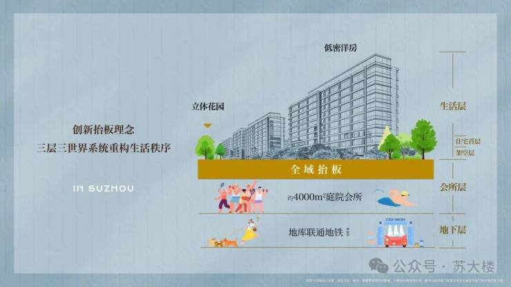 凭借约3米全域抬板,打造「地下通勤层-地面交互层-私域生活层」的新加坡式高效且松弛,丰富且纯粹的立体生活体系与立体归家动线系统。