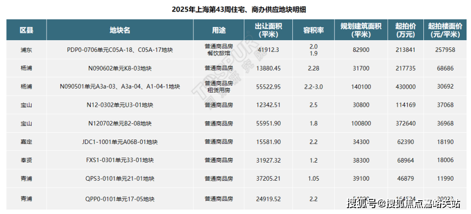 本周新增土地供应9宗,分布于浦东新区、杨浦区(2宗)、宝山区(2宗)、嘉定区、奉贤区、青浦区(2宗),宗地总用地面积28.92公顷,总建筑面积约55.26万方,起始总价约169.11亿元。