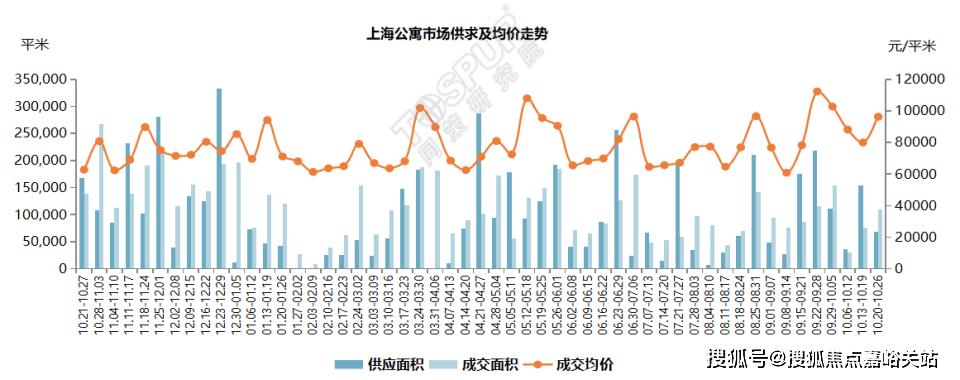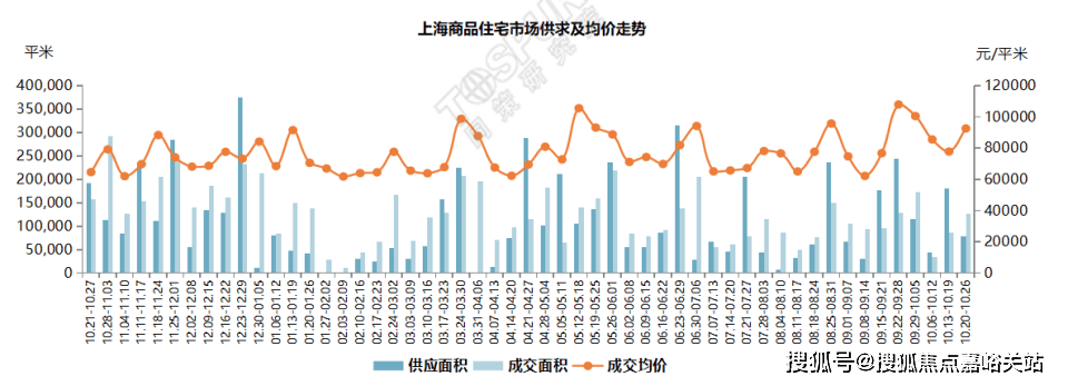 本周商品住宅新增供应量7.91万平米,环比下跌56.36%,同比下跌58.80%,成交量12.63万平米,环比上涨47.51%,同比下跌19.96%,成交均价92673元/平米,环比上涨18.99%,同比上涨43.22%。10月25日,根据网上房地产公示信息新增5个商品住宅项目,共约7.68万平米,合计499套房源。分布于浦东、黄浦、静安、杨浦及宝山。本周有12个项目结束认购,其中位于虹口的金茂璞元认购110+,认购率104%。本周有9个项目开盘,分别位于浦东、静安、虹口、徐汇、普陀、嘉定、闵行、松江和奉贤。