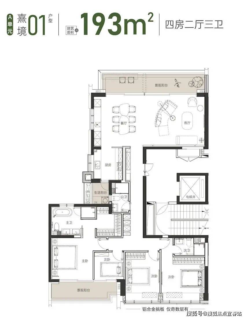 所有户型均采用专梯入户设计,从踏入电梯厅开始的空间全送给业主独有,保障了豪宅的私密性。户型设计充分考虑了观景需求,实现了“户户向南、户户看山、户户无遮挡”的视野效果。
