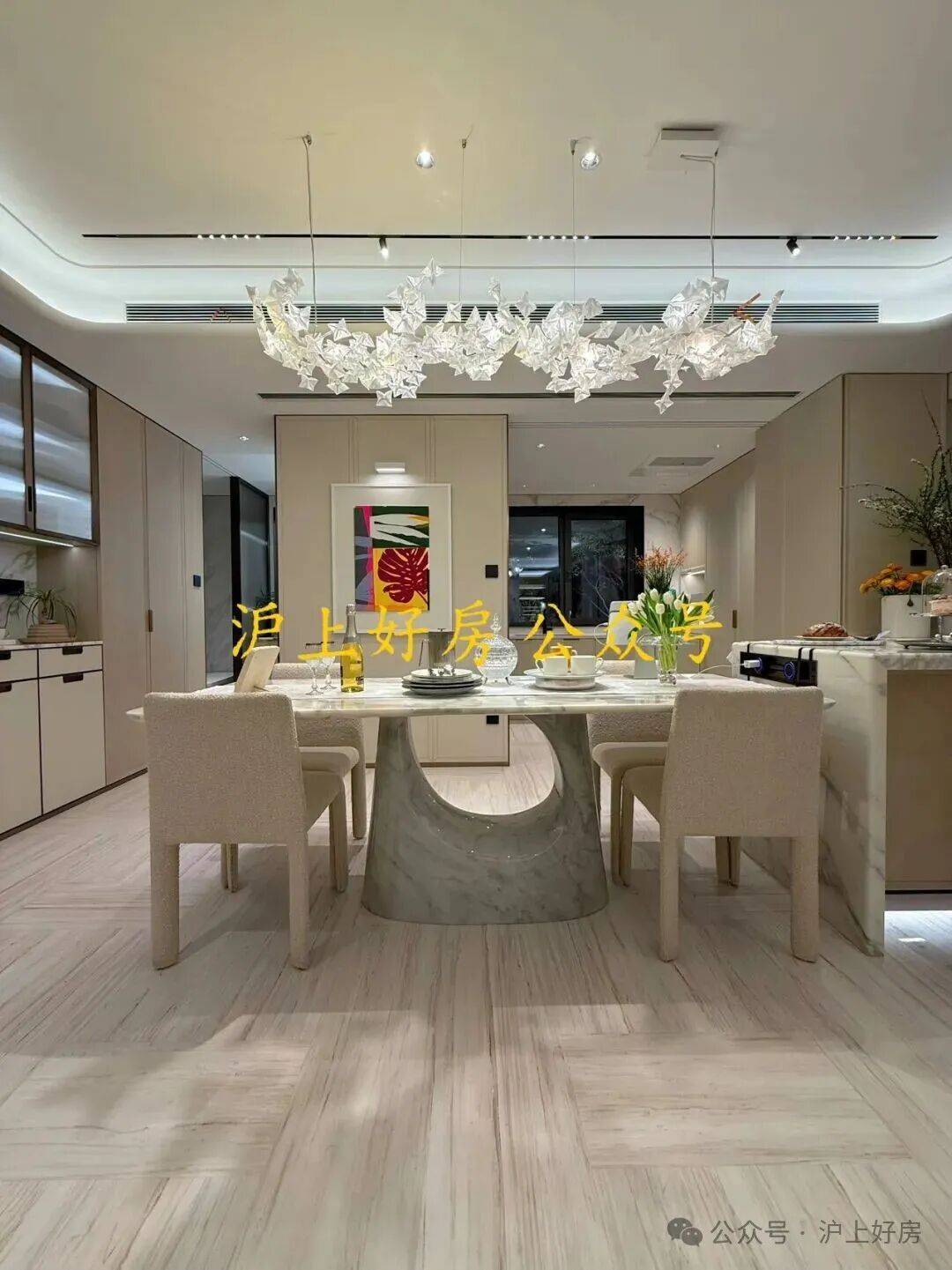 另外,因为豪宅客户对于精装美学有自己的审美,所以此次项目提供了超越行业的三大柔性定制——艺术家联名定制入户门把手、艺术家联名定制艺术门牌挂画以及墙面饰面&岛台等区域提供多款石材/岩板款式。